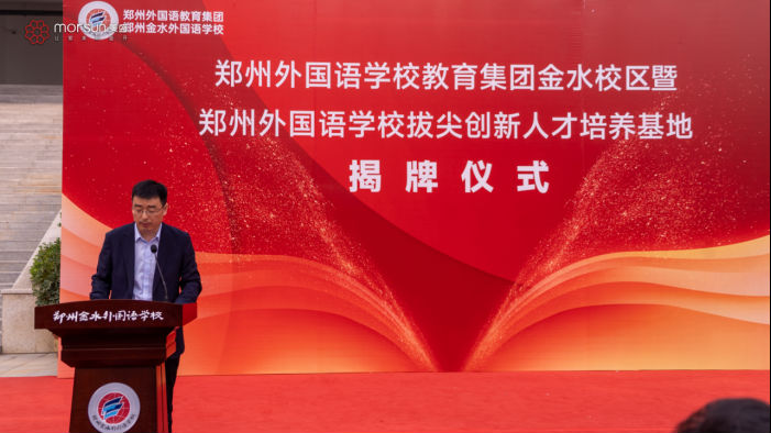 2023年4月20日上午,鄭州外國語學校教育集團金水校區暨鄭州金水外國語學校拔尖創新人才培養基地揭牌儀式在鄭州金水外國語學校舉行。